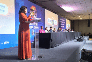 Em seu discurso, a presidenta da ABEn, Jacinta Sena, destacou a importância das discussões dos temas ambientais realizados na COP 30, em Belém (PA), uma vez que as consequências do aquecimento global estão diretamente relacionadas à saúde e à atuação da Enfermagem. Jacinta também apontou a