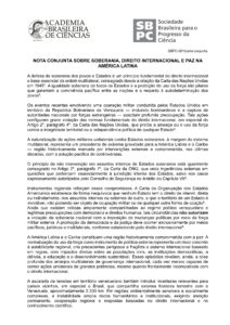 Academia Brasileira de Ciências e Sociedade Brasileira para o Progresso a Ciência (SBPC) publicam Nota Conjunta Sobre Soberania, Direito Internacional e Paz na América Latina