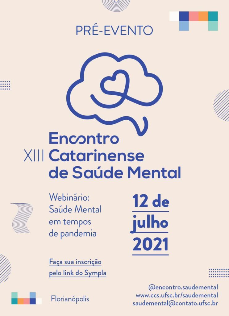 WEBINAR – A SAÚDE MENTAL EM TEMPOS DE PANDEMIA. 8 de julho de 2021 admin Post in Notícias XIII Encontro Catarinense de Saúde Mental 2021 – 12/07/2021. Clique aqui e confira o Programa