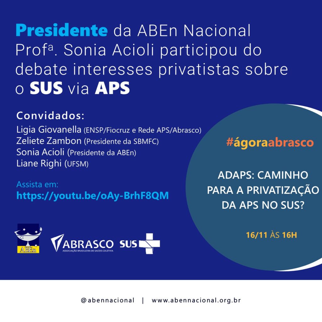 Abrasco, junto com ABEn – Associação Brasileira de Enfermagem e SBMFC – Sociedade Brasileira de Medicina de Família e Comunidade, debate o modelo de organização da Agência Para o Desenvolvimento da Atenção Primária à Saúde (ADAPS).