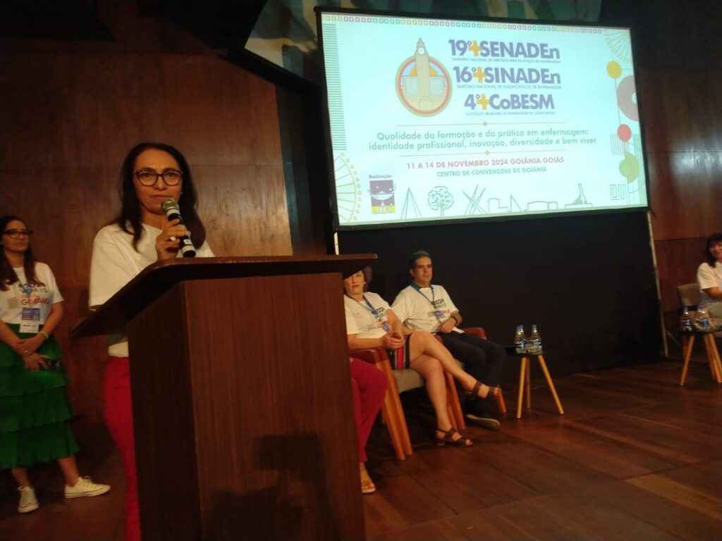 O lançamento dos eventos foi realizado na manhã do dia 13 de novembro, no Teatro Noel Rosa, na UERJ, como parte da programação do 74º CBEn. A presidenta da ABEn seção de Goiás, Marta Valéria Calatayud Carvalho, apresentou os resultados de um intenso processo de construção coletiva, que resultou no tema – “Qualidade da formação e da prática em enfermagem: identidade profissional, inovação, diversidade e bem viver” – assim como nos temas e eixos que nortearão as atividades formativas. Marta também anunciou que a inscrição de trabalhos para premiações será realizada entre março e junho de 2024. “Preparem seus resumos e participem!”, chamou a presidenta.